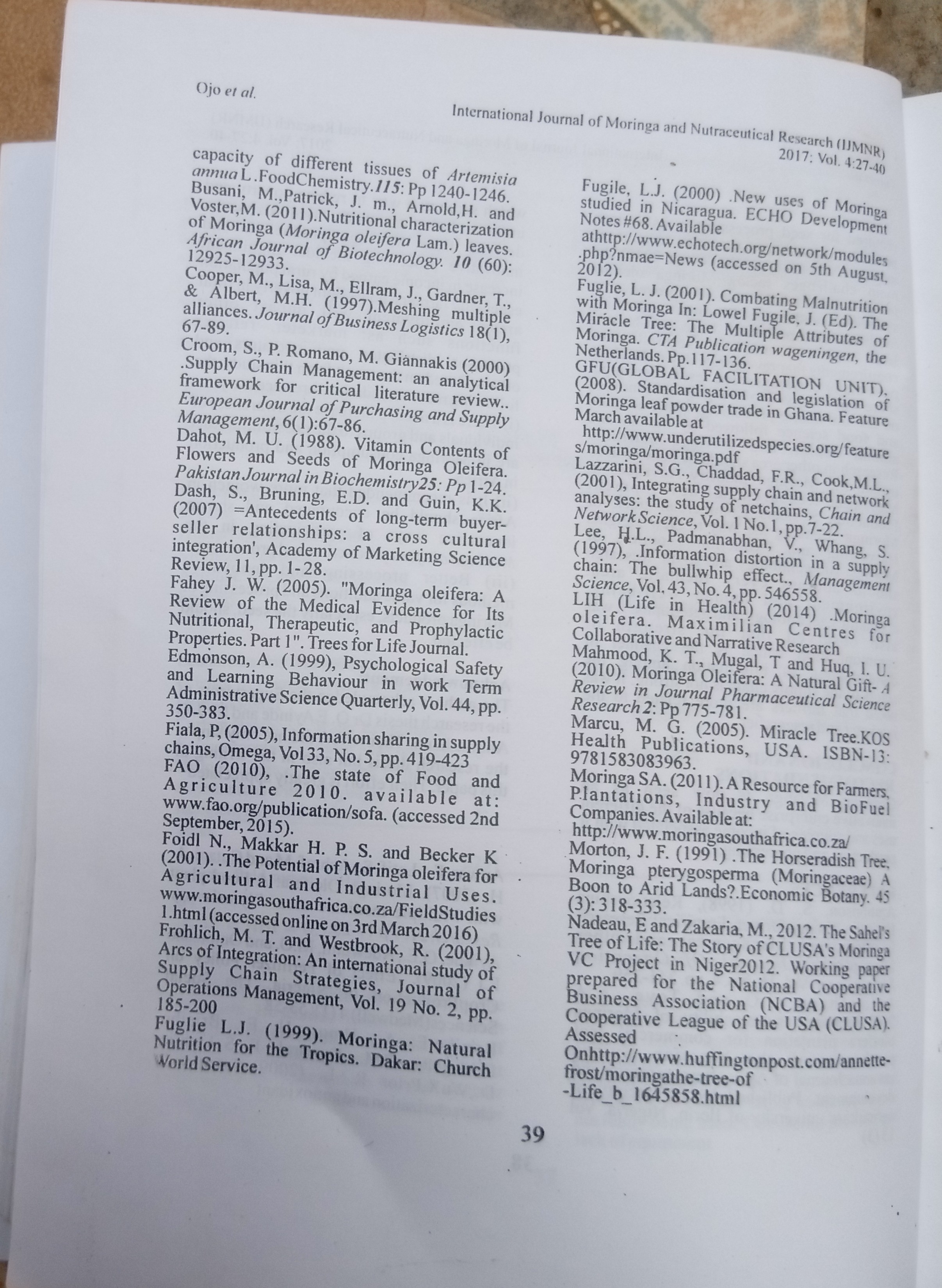 Knowledge transfer Moringa oleifera, Africa heritage, supply chain, value chain, and Innovation
