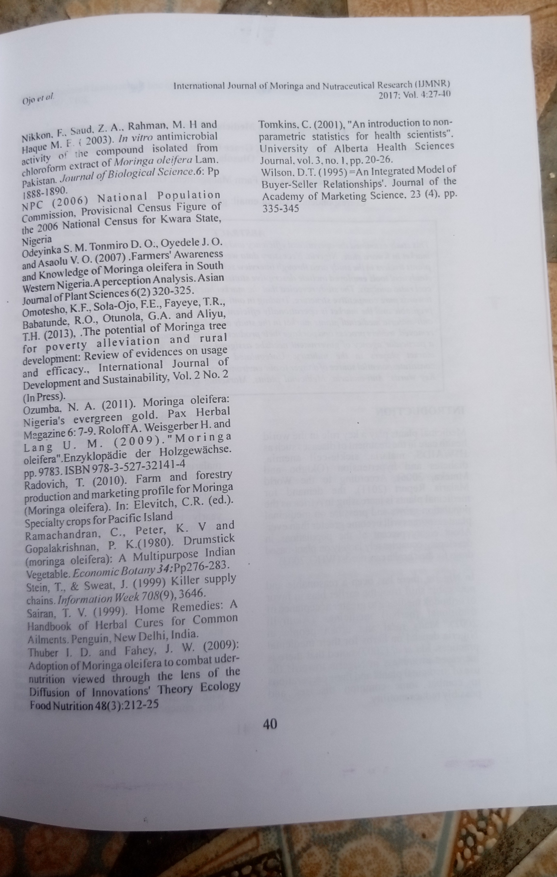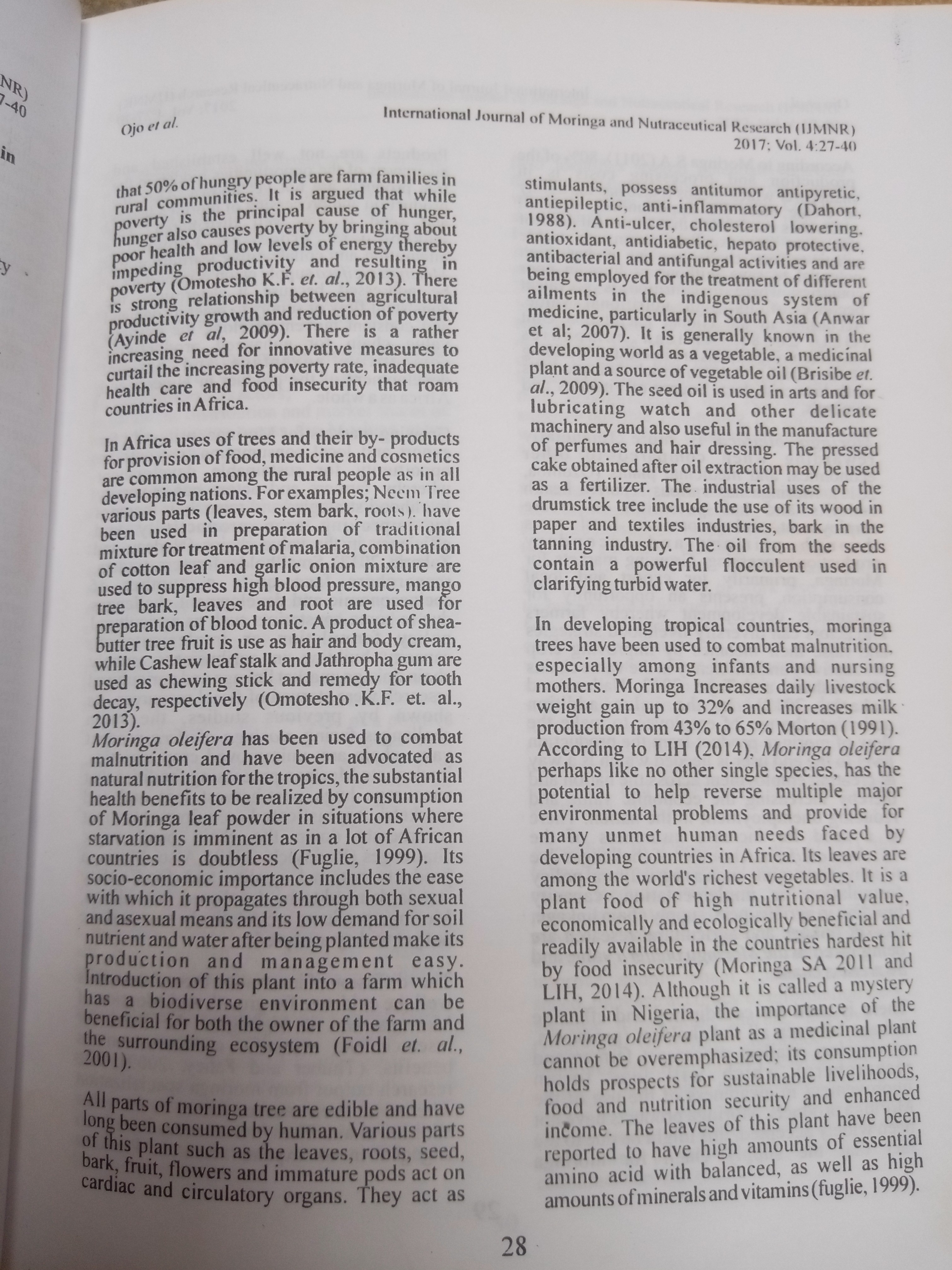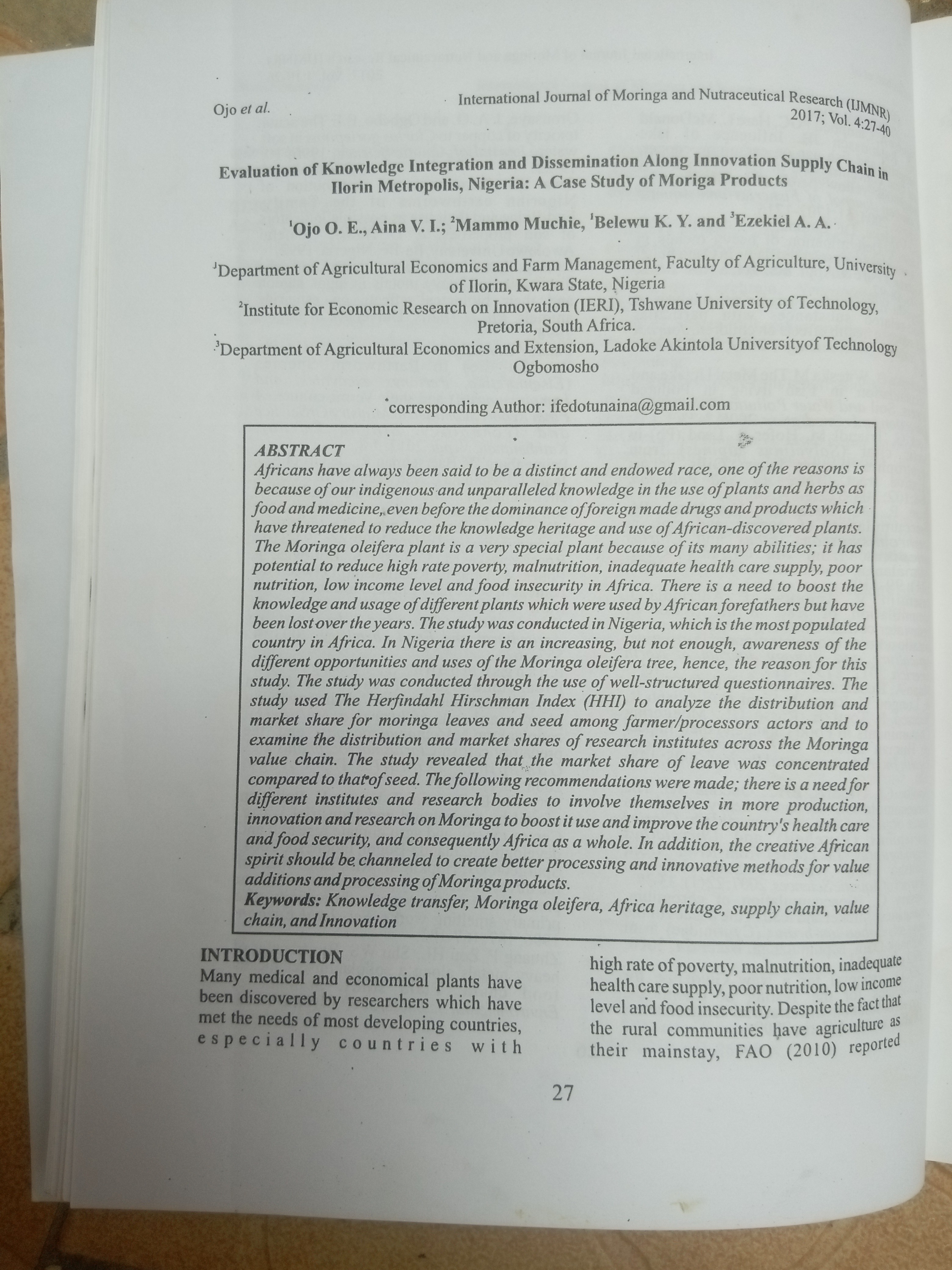 International Journal of Moringa Nutraceutical Research (IJMNR) Published by Faculty of Agriculture, University of Ilorin.