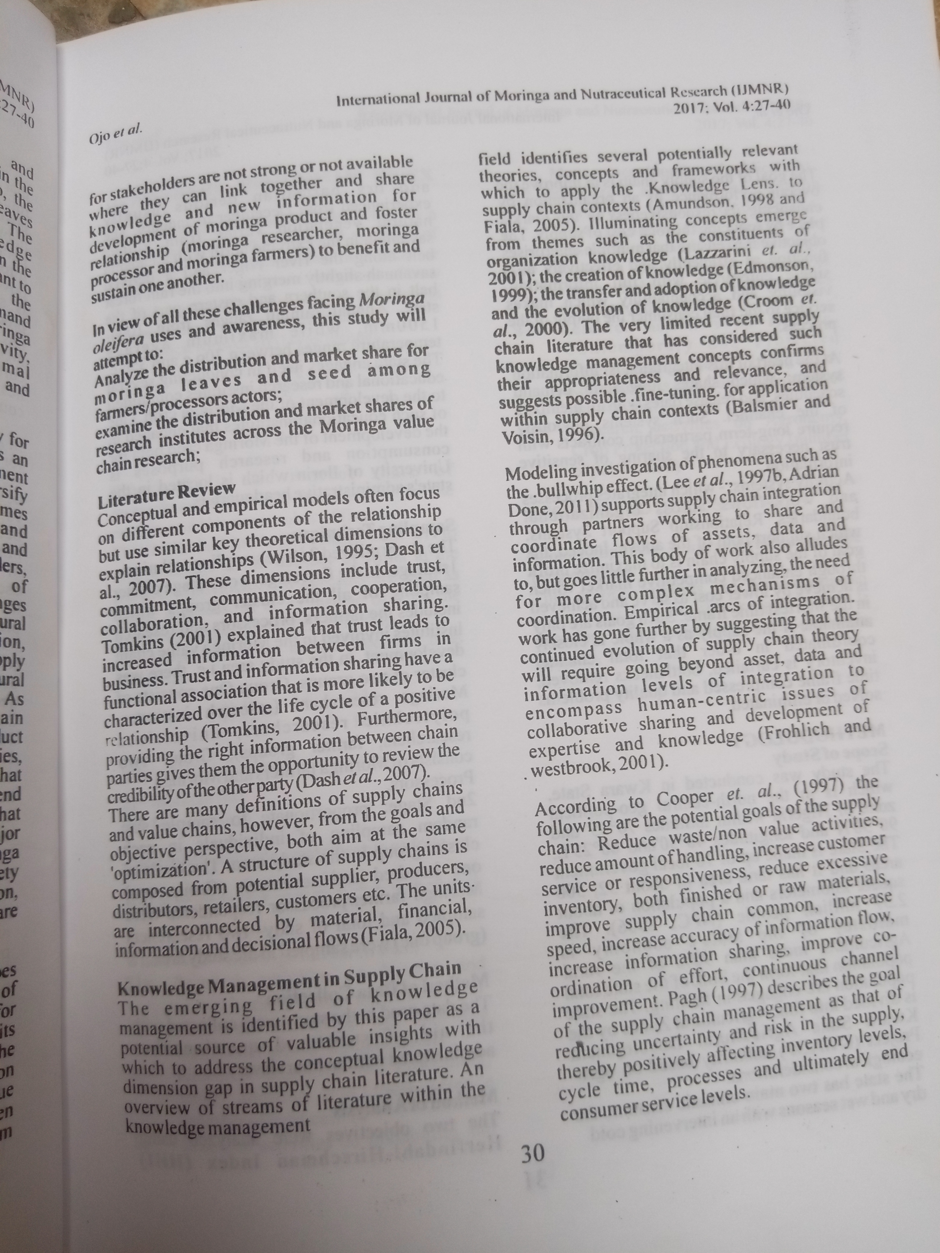 Evaluation of knowledge integration and dissemination along innovation supply chain in Ilorin metropolis, Nigeria: a case study of moringa products